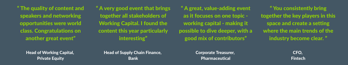 Over more than a decade, it has become the must-attend event for everyone charged with optimising working capital. Just ask our sponsors and delegates...
